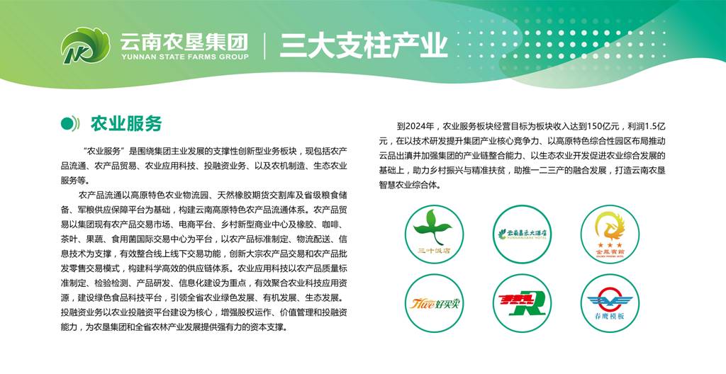 “农业服务”为集团三大支柱产业之一,是
